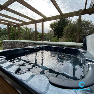 All spas built with slate grey pool cover
