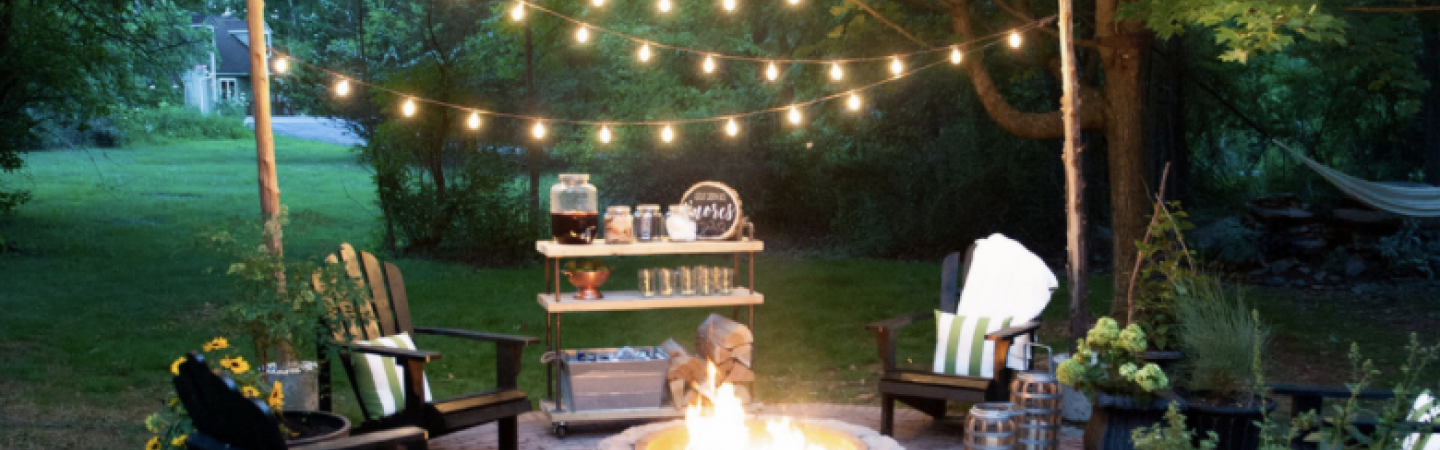 Lighting is one of the easiest ways to create atmosphere around your fire pit. A couple of lengths of fairy lights or outdoor bulbs look amazing sound through nearby trees or along the gutters of your home. If you have access to a power supply, plug in lighting will give you a brighter effect than solar. Solar lighting is a great idea if you don’t have access to a power point nearby though.
