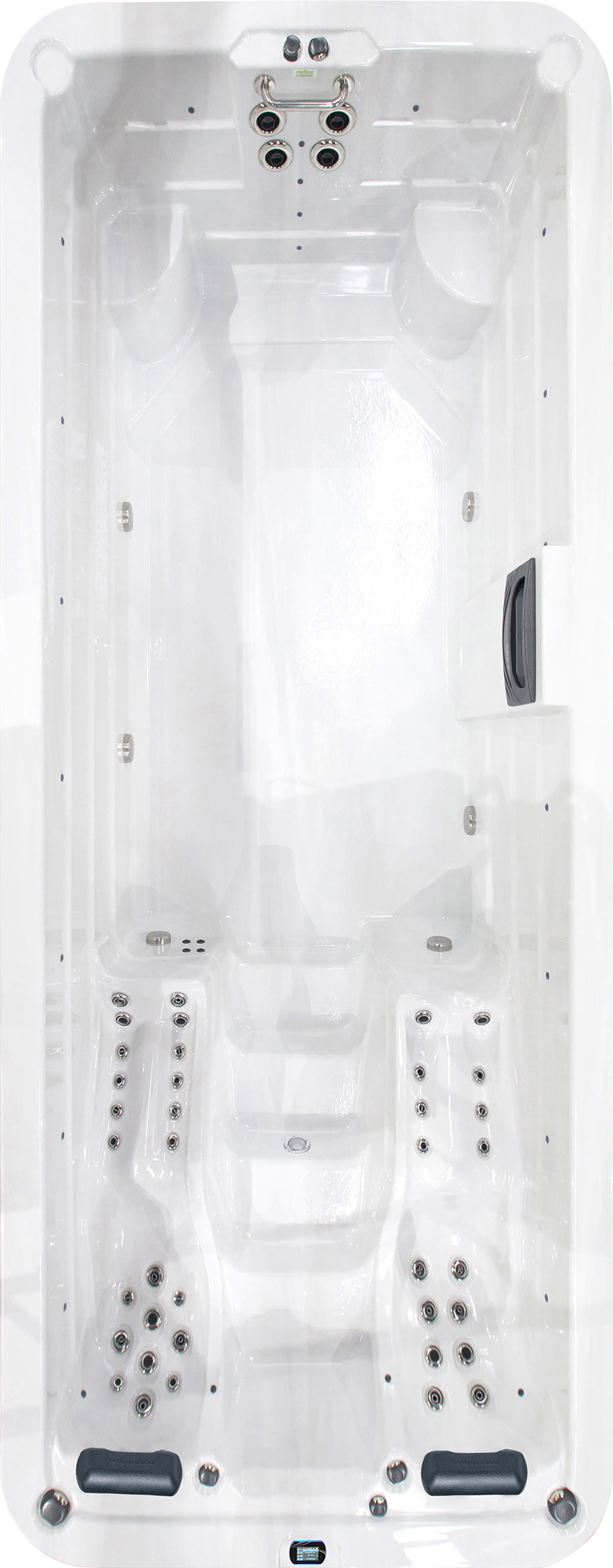 The unique shape of the myIndulge 6.0m swim spa is designed to maximise space, ensuring that you have ample room to enjoy your aquatic workouts and relaxation sessions. Equipped with four powerful swim jets, each driven by individual pumps, this swim spa is perfect for strong swimmers and professional athletes seeking a challenging and stimulating workout.